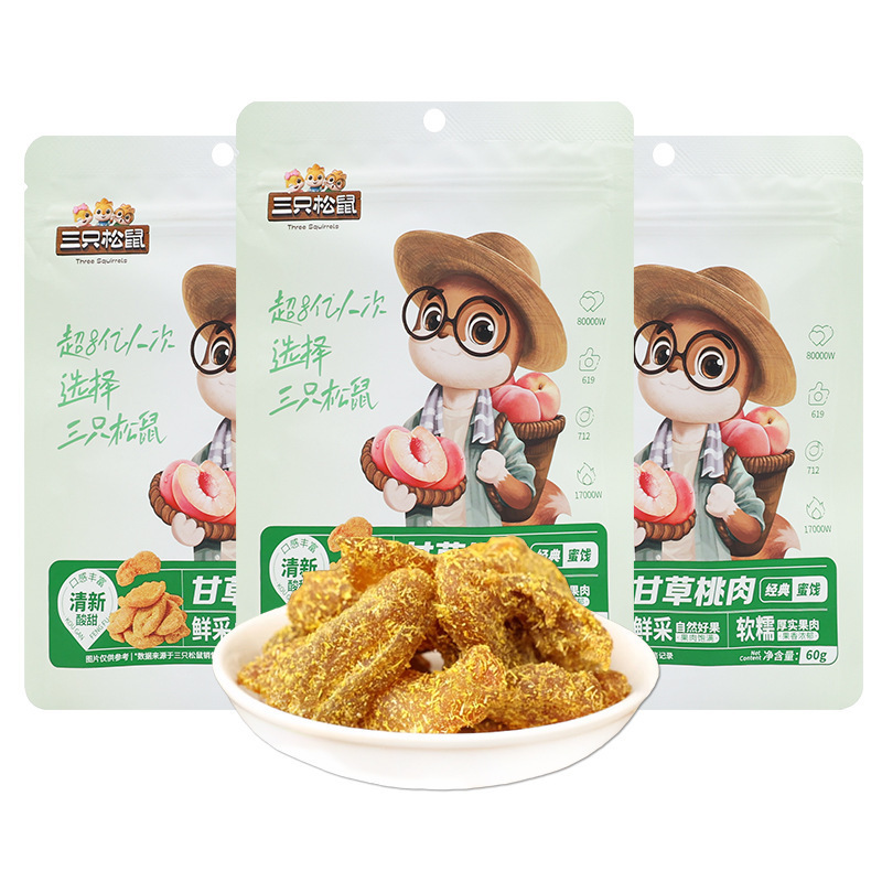 ドロップシッピング 3 リス甘桃肉 60 グラム袋スナック砂糖漬けフルーツ桃ドライカジュアルドライフルーツ送料無料