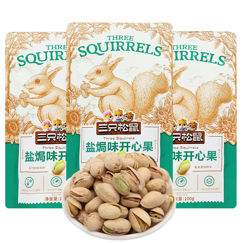 ドロップシッピング 3 つのリス塩焼きピスタチオ 100 グラム新しいカジュアル無漂白ナッツドライフルーツスナック