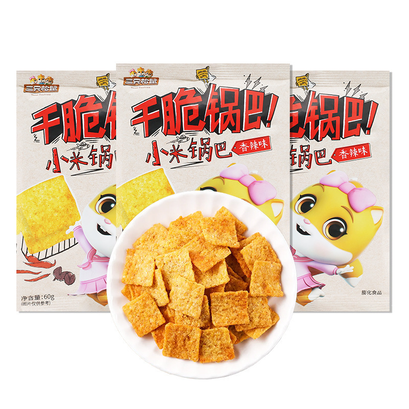 ドロップシッピング 3 つのリス Xiaomi クリスピーライス 60 グラム/バッグカジュアルスナック女の子の伝統的なスナックスパイシーな送料無料