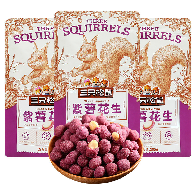 ドロップシッピング 3 つのリス紫芋ピーナッツ 205 グラム/バッグカジュアルスナックスナック揚げピーナッツ送料無料
