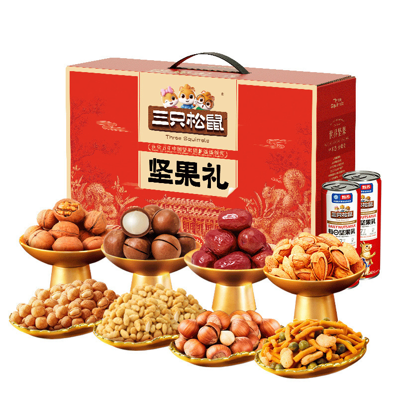 新到着 2024 三リスナッツギフトボックスレッドゴールドモデル 1643 グラム/11 袋スナックギフトパックデイリーナッツ