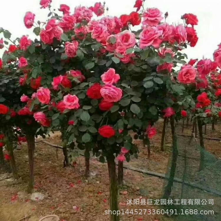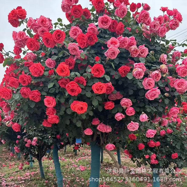 庭の盆地に植えられた木の形をしたバラの花の苗を移植して、香りが強い3~4-5cmの大きなバラの木を作ります。