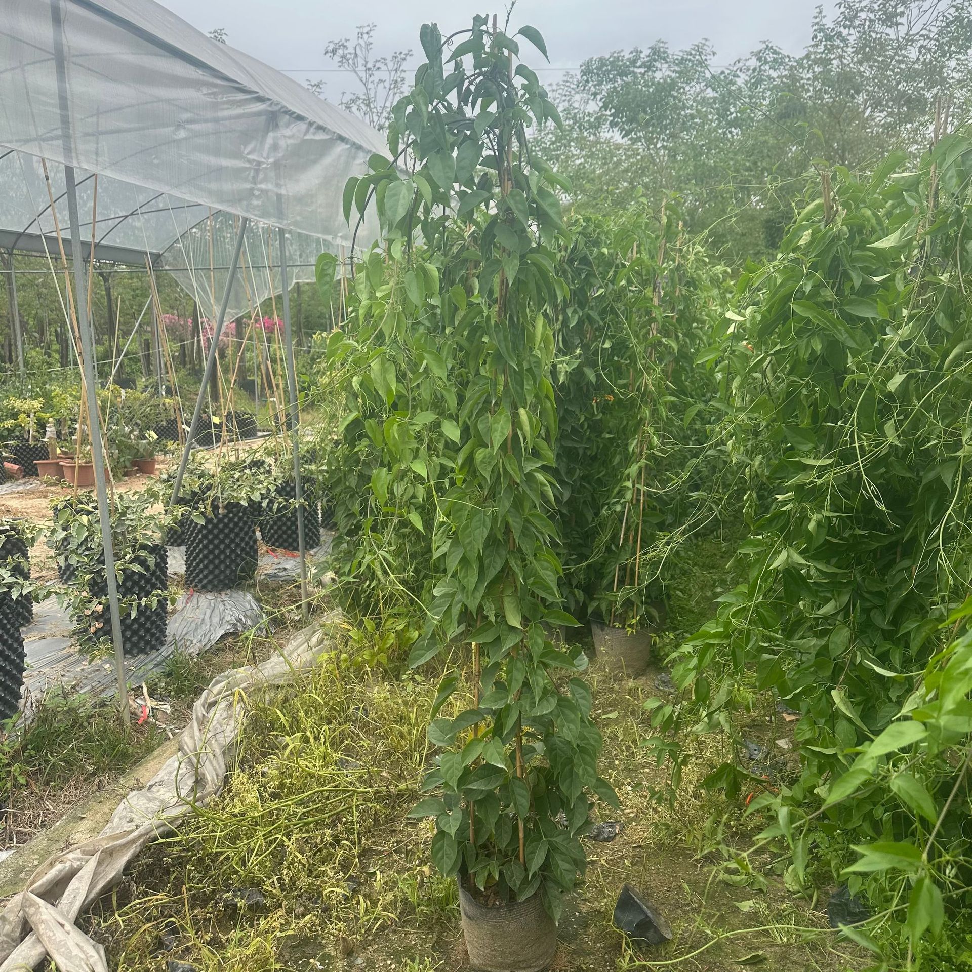 卸売つる苗、つるの苗木、三葉五葉の赤いつる苗、鉢植えつる、つる花