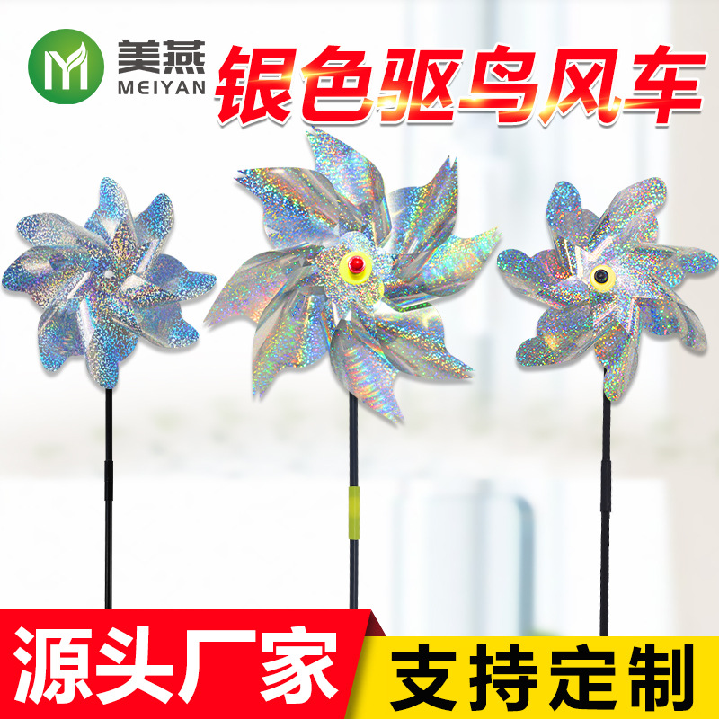 メーカークロスボーダー銀色駆鳥風車レーザー風転大風風車厚い果樹園農場はおもちゃ風車を作ることができます。