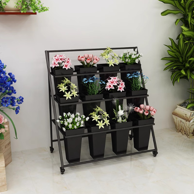 花屋花架組み合わせ階段式移動花プラスチック花桶軽豪華鉄芸帯車輪展示棚