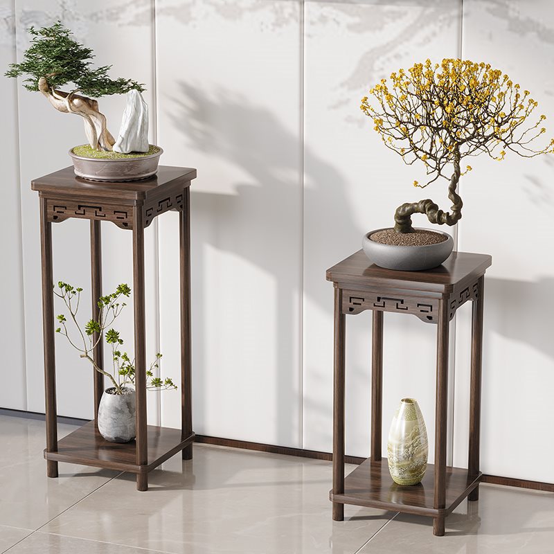 フラワースタンド収納ラックバルコニー無垢材多層床置きホームリビングルーム中国風フラワーテーブル多肉植物ポトス植木鉢棚