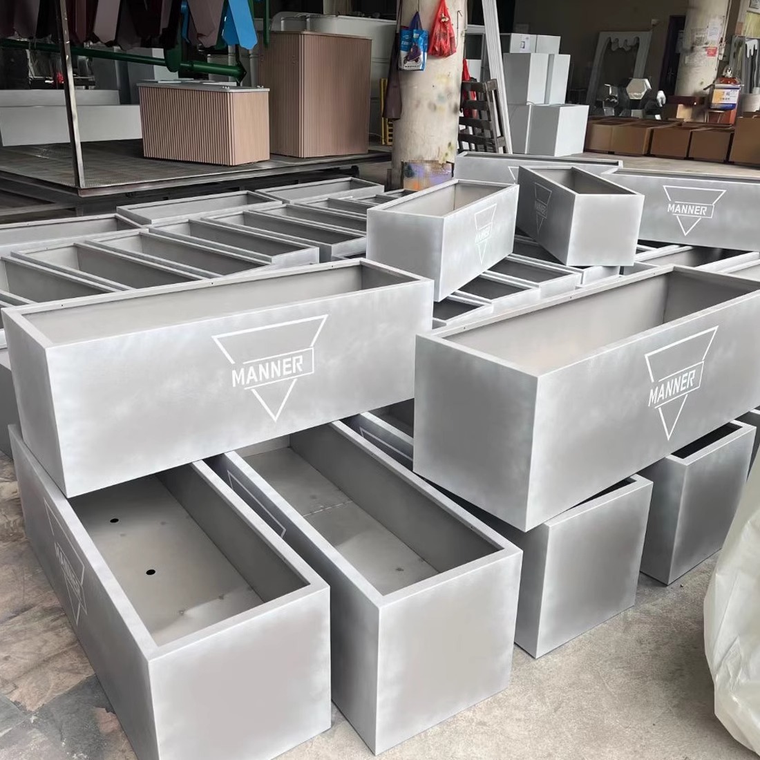 屋外模造セメント石材ステンレス花箱長方形金属栽培木箱鉄芸景観移動植木鉢