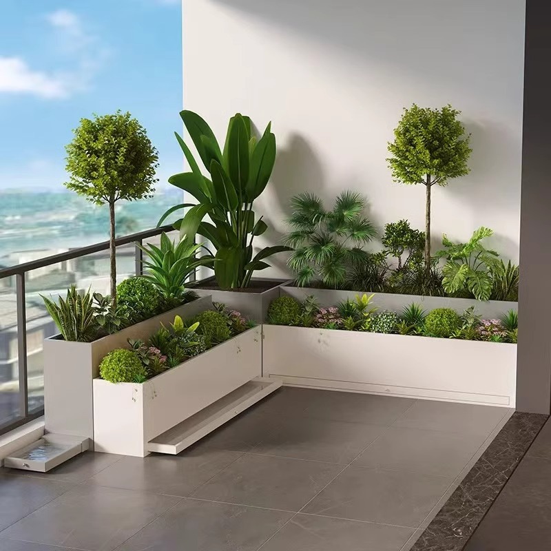 屋内バルコニーフラワーボックス水トレイ屋上トレイフラワートラフ屋内アイアンコンビネーションフラワーボックスステンレス鋼白植木鉢