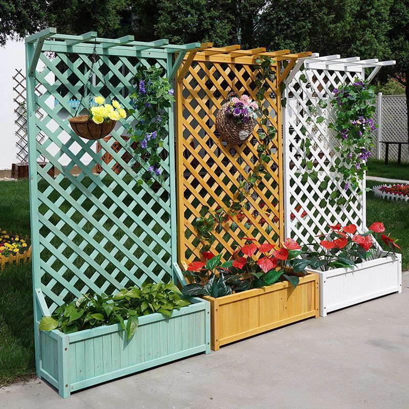 防錆木製フラワーボックス屋外グリッドつるラックバルコニー植栽ボックスガーデンガードレールフラワーラックテラスフェンス植木鉢ラック