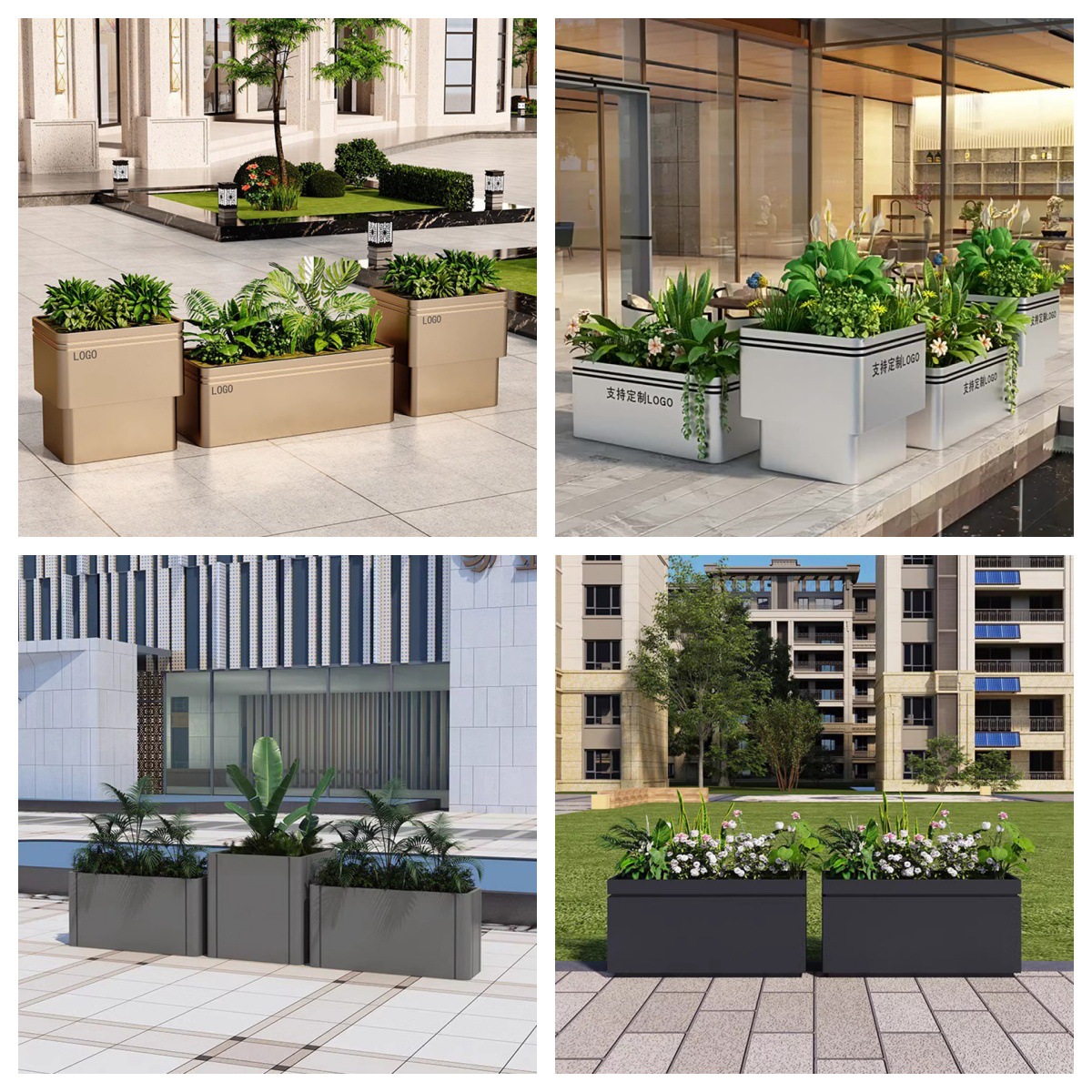 屋外ステンレス花箱セット屋外移動花壇販売部商業広場鉄芸花鉢市政樹箱
