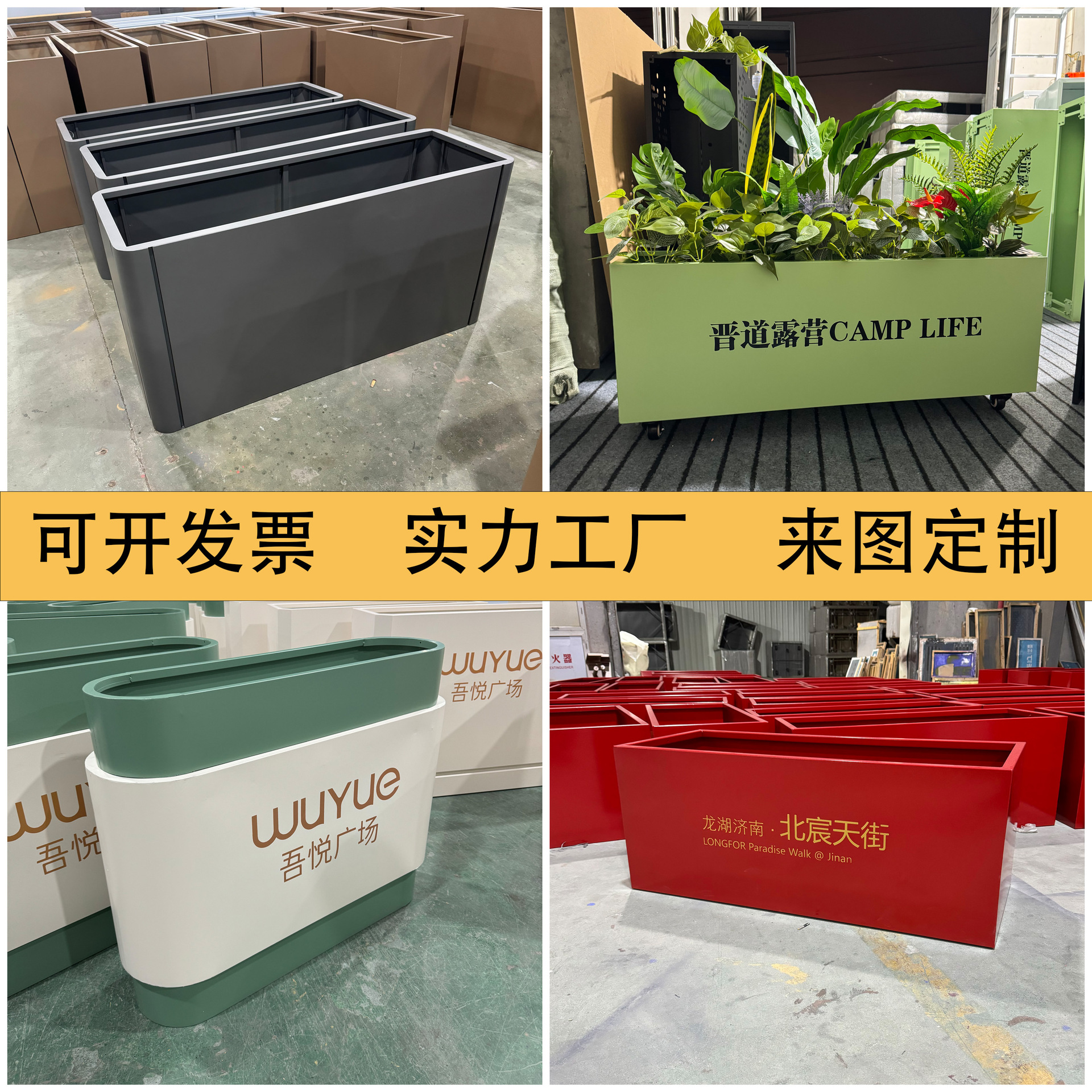戸外鉄芸花箱組合商店街広場ステンレス植木鉢景観市政道路完成花溝ガードレール
