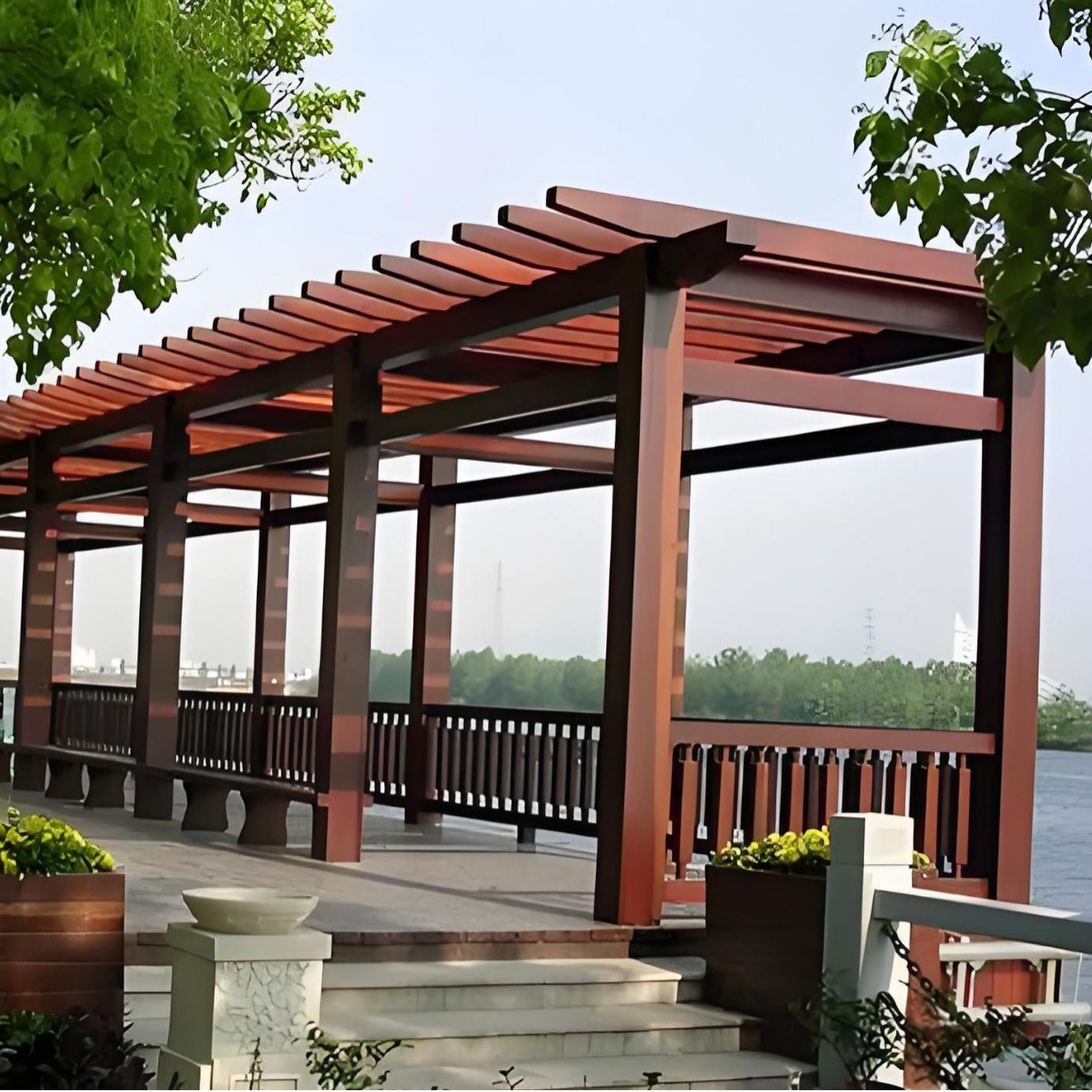 防腐木製のブドウ棚、無垢材の廊下、庭園の涼亭、花の棚、木製の長廊、ガレージ、屋外の庭園、木工芸の棚