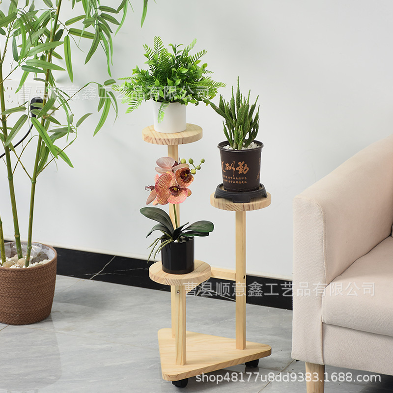 無垢材の屋内および屋外のバルコニーの花スタンド多層床置きポトス多肉植物ディスプレイスタンド回転可能な緑の植物装飾スタンド