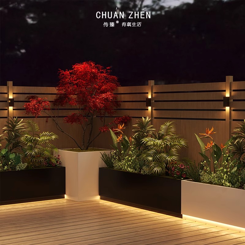 中庭ヴィラ庭園造園フラワーボックス組み合わせ屋外発光緑植物植栽ボックス屋外ステンレス鋼フラワーボックス
