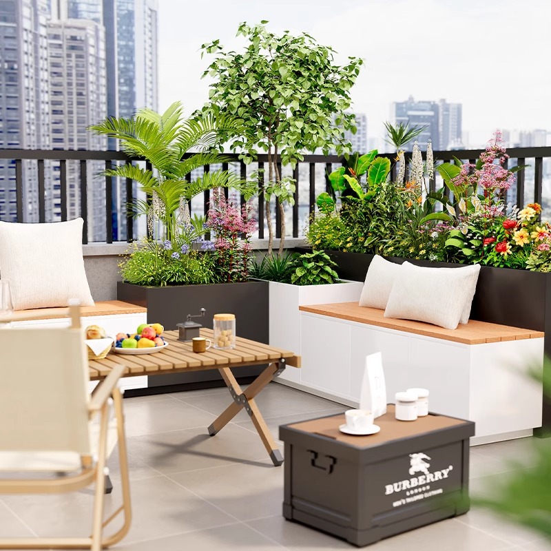 空中庭園バルコニー金属仕上げフラワーボックスヴィラ中庭屋外プラスチック木製シートフラワーボックス組み合わせ