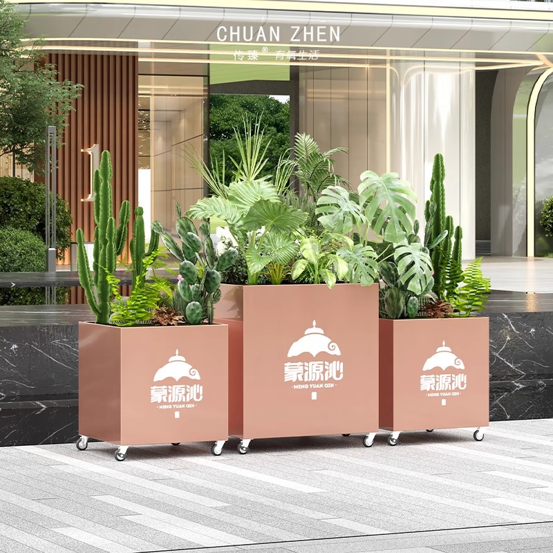 ユニバーサルホイール付き錬鉄製屋外フラワーボックス緑化花壇ホテルミルクティーショップカフェ屋外パーティションモバイルフラワーボックス