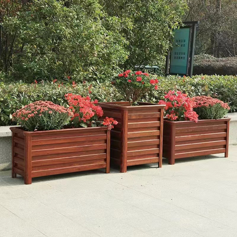 屋外ステンレス鋼フラワーボックスストリート屋外鉄フラワーボックス長方形営業部植木鉢正方形モバイル花壇