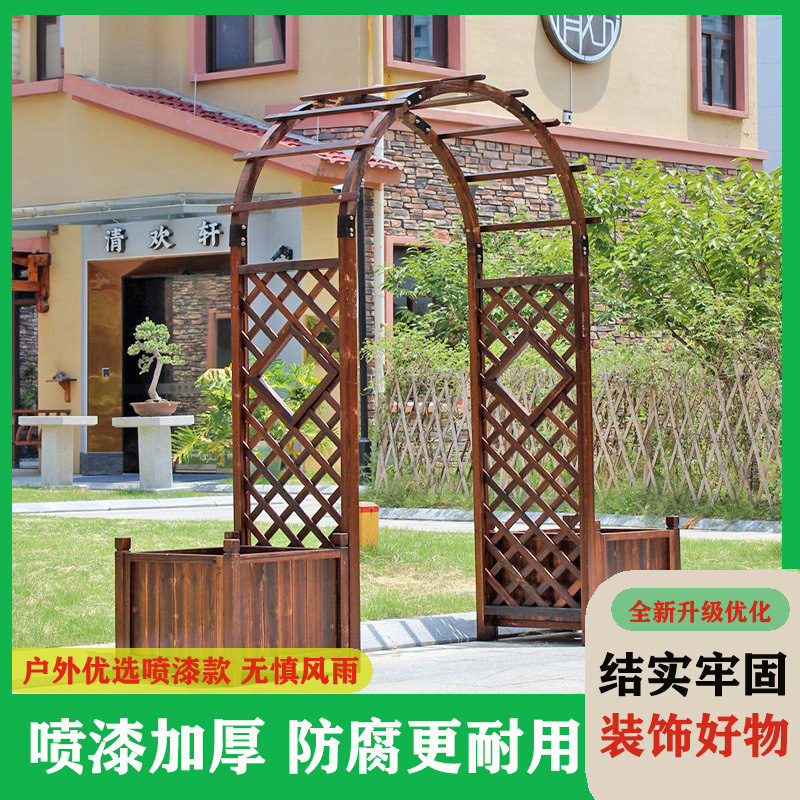 屋外フラワーラック防錆木製アーチつるラック屋外装飾庭曲線ドアフェンスフェンス中庭
