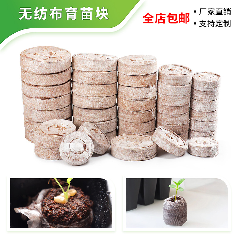外国貿易ホット販売吸水性拡張高速繁殖発芽圧縮栄養土不織布苗ブロックココナッツ糠園芸