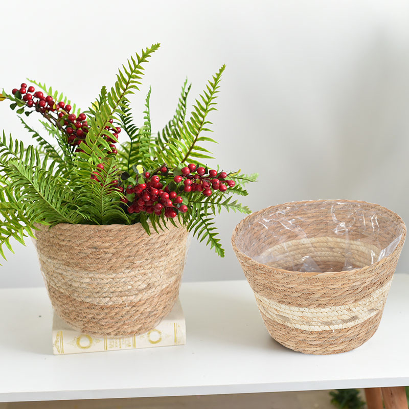 工場ソース手作り草編み植木鉢花器鉢植え植物生花家庭抱っこバケツ花かご編み収納かご