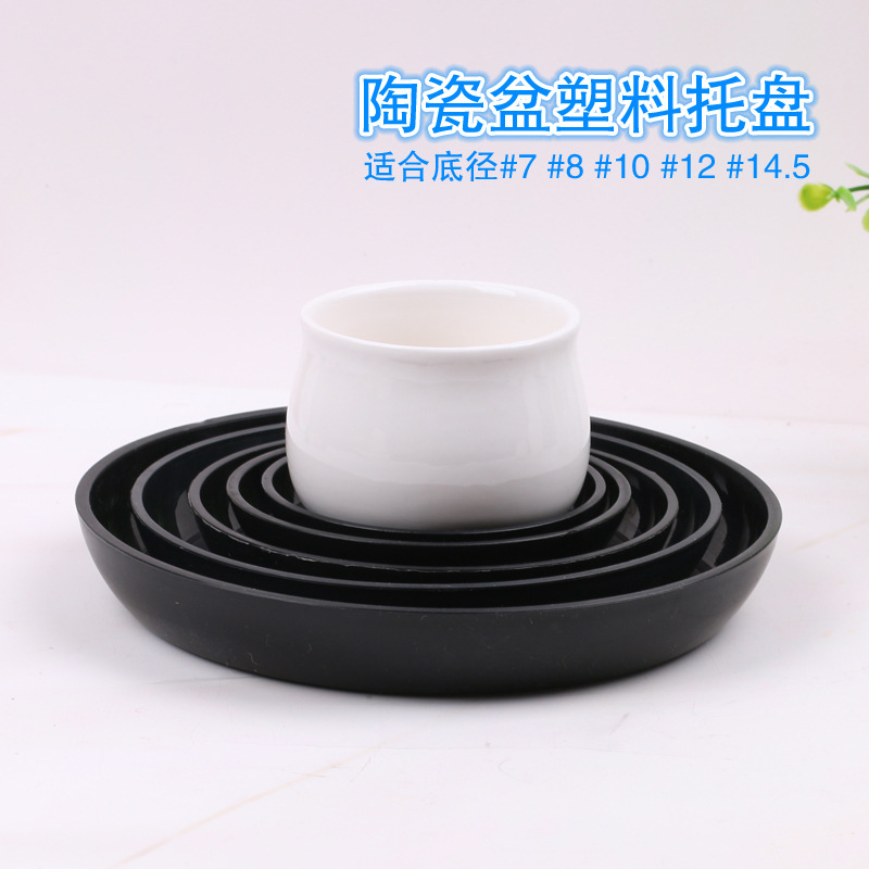 丸いプラスチック製の植木鉢トレイ、底が厚く、卓上用の多肉植物の水受けトレイ、黒と白