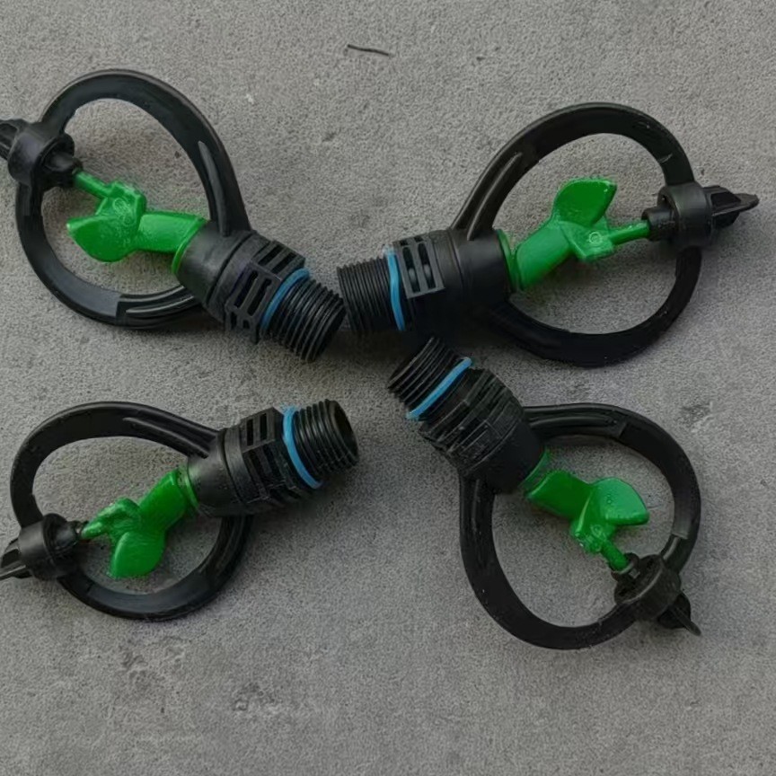 4点360度調整可能な回転ロッカーブラケットノズル、黄色のハンドルロッカーブラケットノズル、調節可能なノズル、灌漑アーティファクト