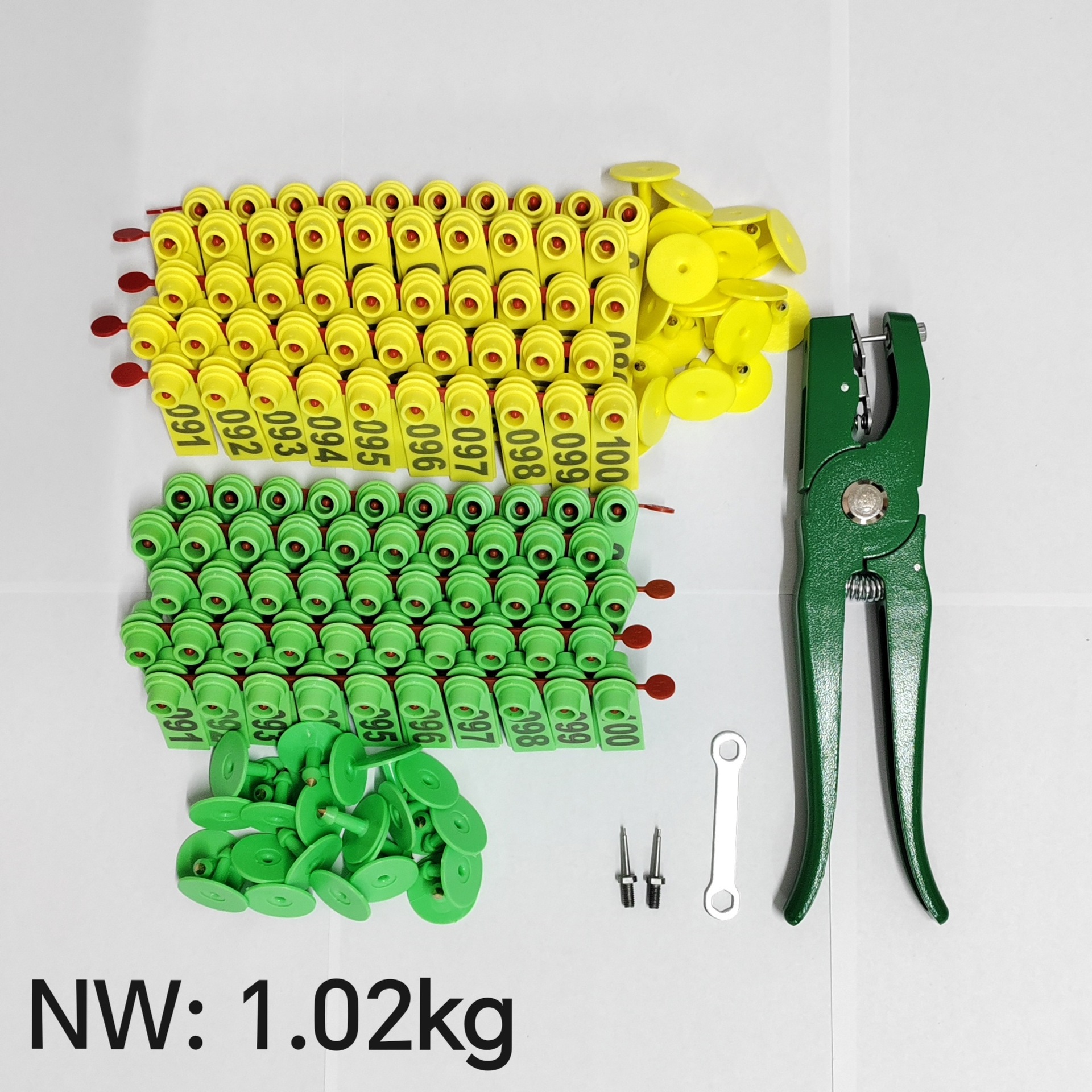 PE羊耳標対外貿易セット耳標鉗子ピン赤黄青緑オレンジ五色包装l 6特恵価格の組み合わせ