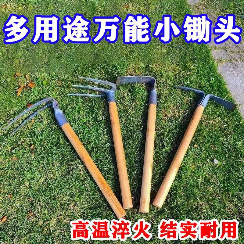 鍬を持って農業用小型鍬を土の神器を掘って硬い土を掘る屋外農業用農具を鍛えて草取りして丈夫になる