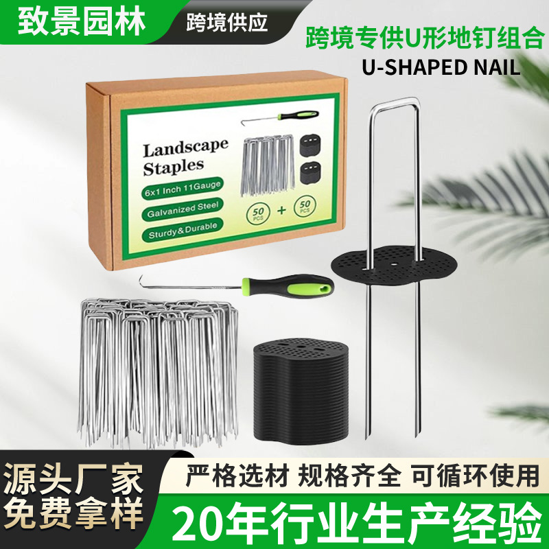 工場直販、海外で人気の園芸用防草布固定用鋲、亜鉛メッキ鋼U字型地釘、園芸用地釘