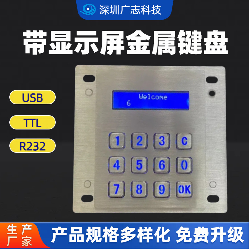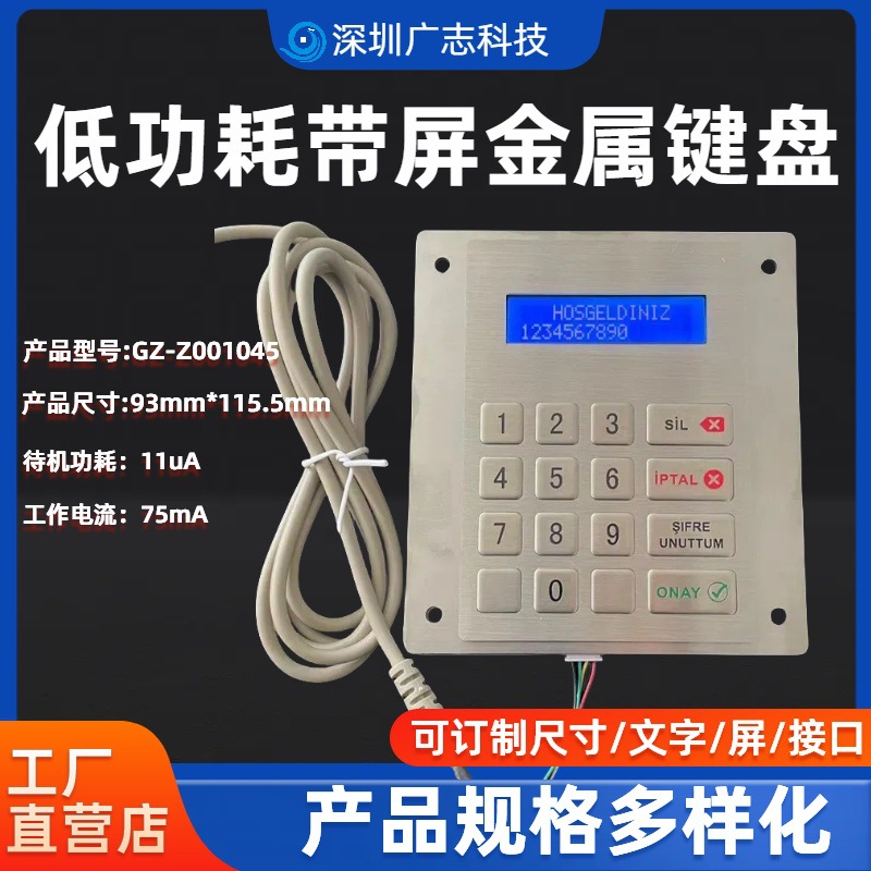 GZ-Z001075発光12キー金属ステンレス工業キーボードPIN PAD 16*2ディスプレイ