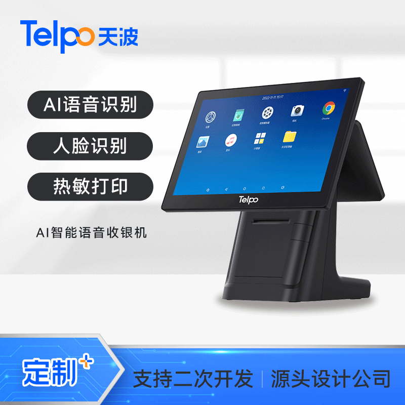 天波メーカーが設計した黒色ダブルタッチレジc1小票印刷音声認識注文会計端末