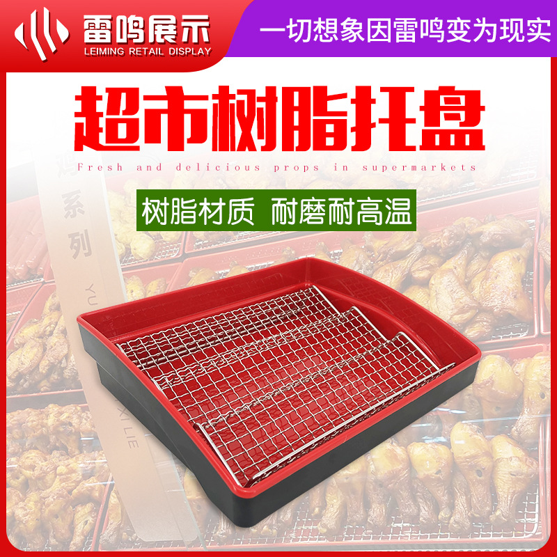 【トランペット】スーパー熟食フライドチキン専用陳列盤黒赤色長方形展示盤