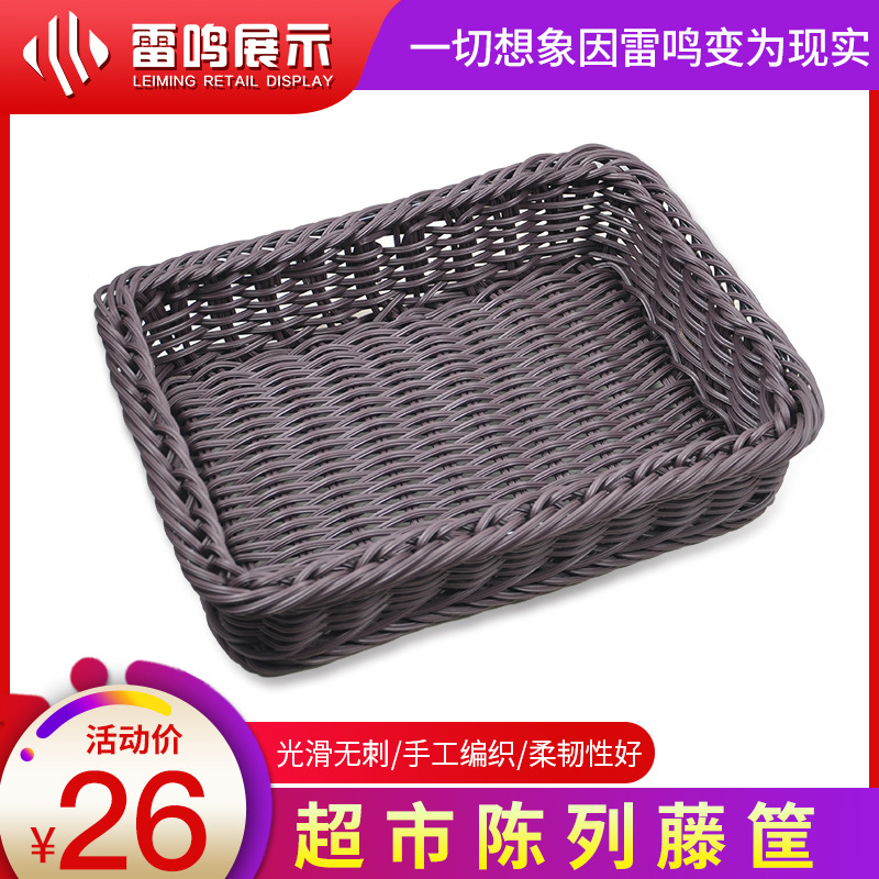 雷は藤編みの果物かごのパンかごのスーパーの果物と野菜の陳列展示かごの間食のプラスチックの編み物かごの収納かごをまねます。