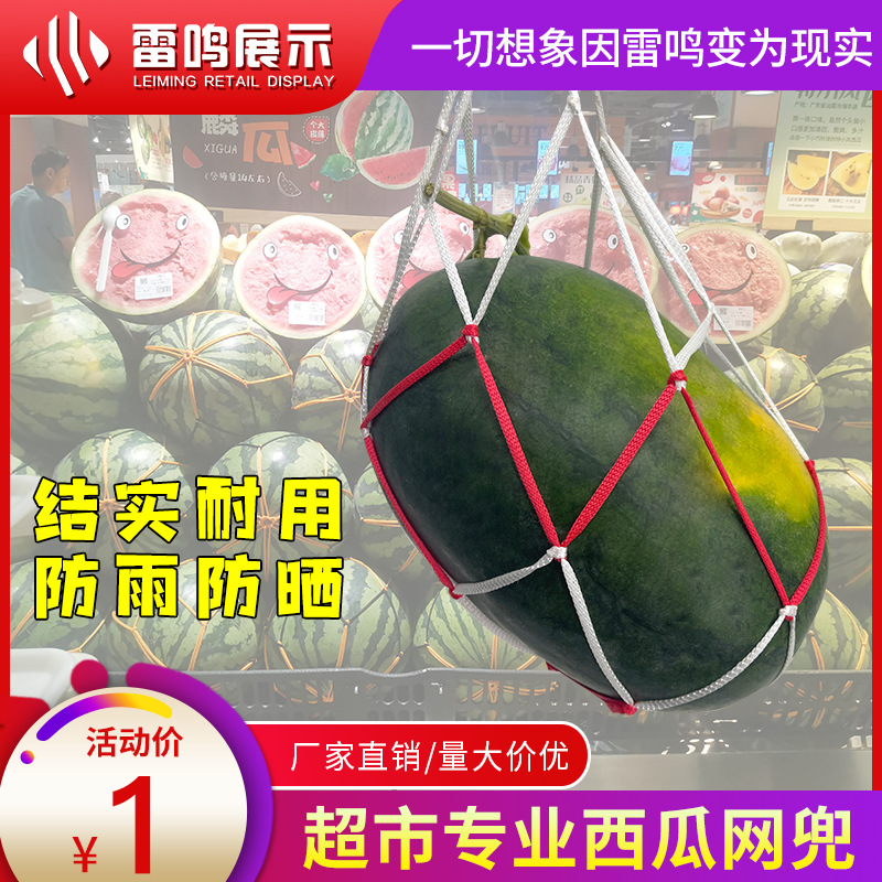 スーパーマーケットのスイカの網袋の網袋は手で編んでスイカの袋のプラスチックのスイカの縄を持って果物の束の目の袋を郵送します。