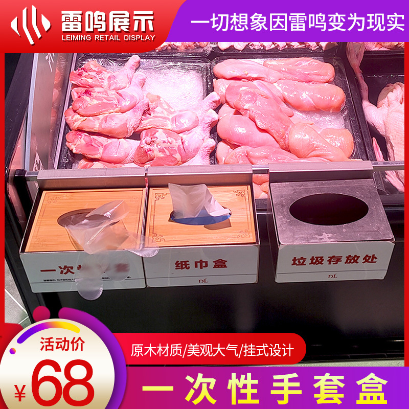 【雷鳴 _ 商超冷凍庫棚陳列使い捨てグローブボックス】吊り下げ式スタンド木箱ゴミ箱セット