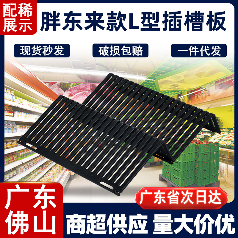 スーパーの果物の仕切りのガードレールの生鮮の段の棚の積み上げの柵の果物と野菜のL型の仕切りの展示棚は型の板を遮ります