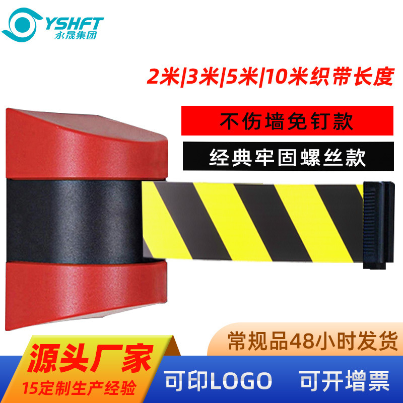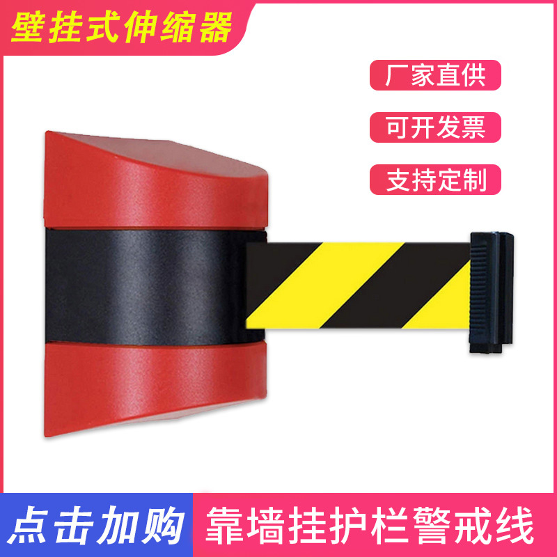 壁掛け警告シェル警告伸縮ベルト壁掛け隔離ベルト黒と黄色の警告ライン伸縮ヘッドパンチなし壁掛け