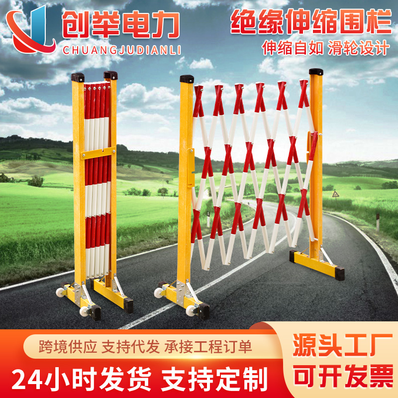 ガラス鋼パイプ式絶縁伸縮フェンス移動式施工折り畳み囲い作業場エリア隔離柵ガードレール