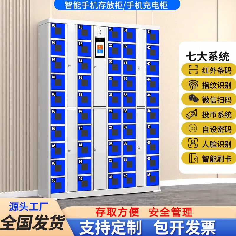 スマートフォン収納庫従業員の顔認識カードスキャン指紋パスワード携帯電話充電預かりロッカー