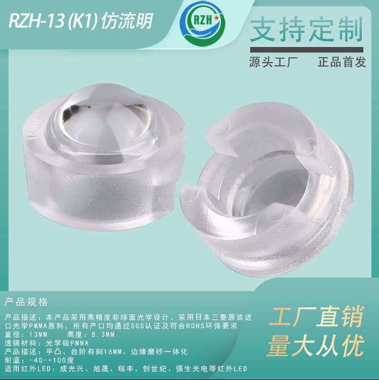 源工場販売 13mmサイズ 角度レンズ PMMAレンズ 緑植物ライトレンズ フラッシュ信号灯レンズ