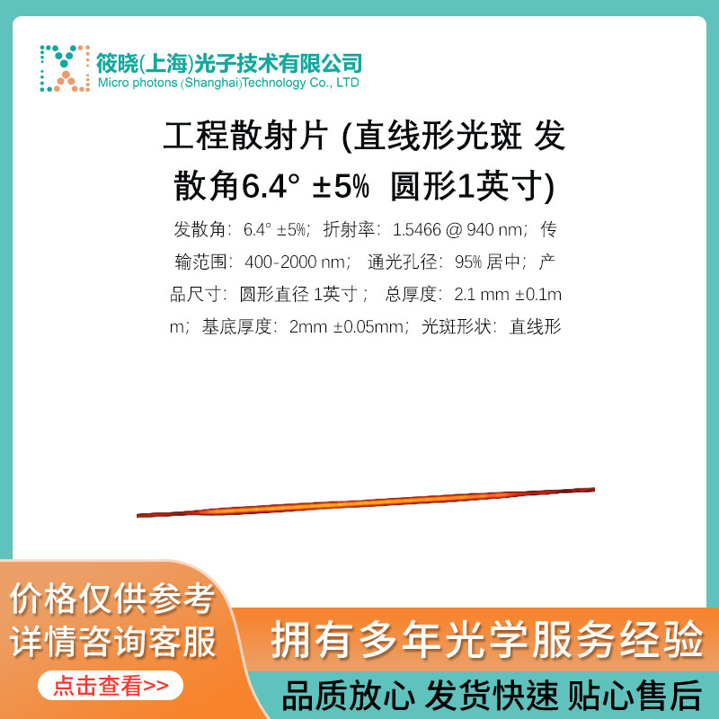 工程散乱シート (直線状スポット発散角6.4 ° ± 5% 円形1インチ)