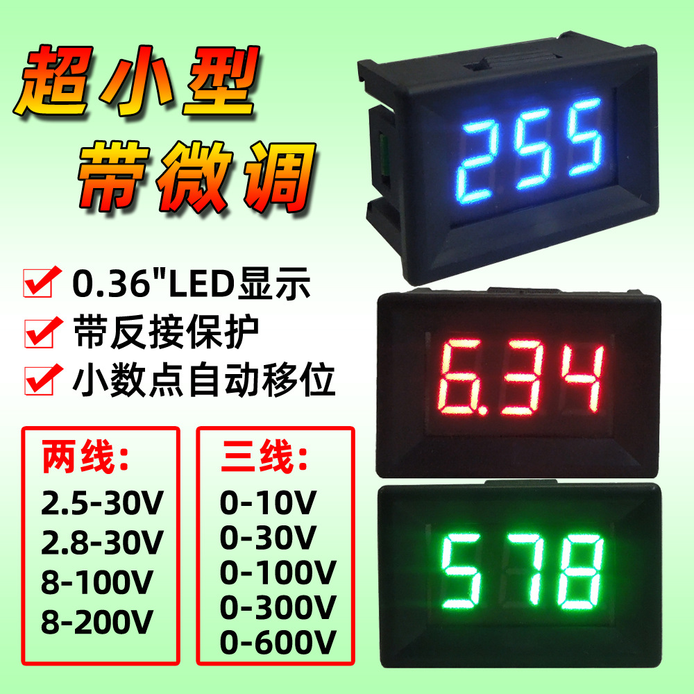 2線超小型直流電圧計デジタルDC電圧計3位0.36インチLEDデジタル電圧計ヘッド