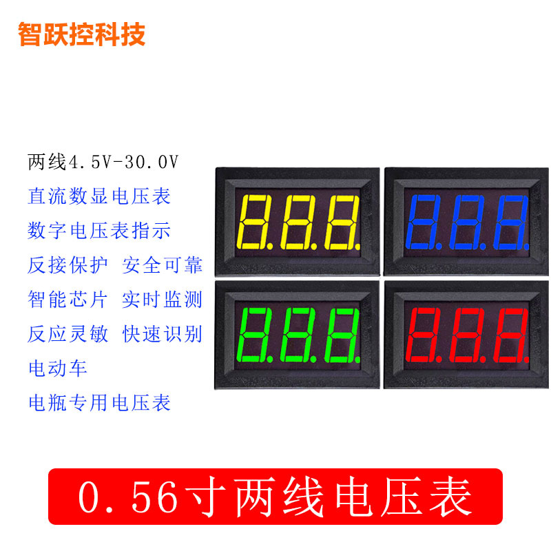 二線直流電圧表ヘッド0.56インチledデジタル電圧計DC4.5V-30.0V逆接続保護