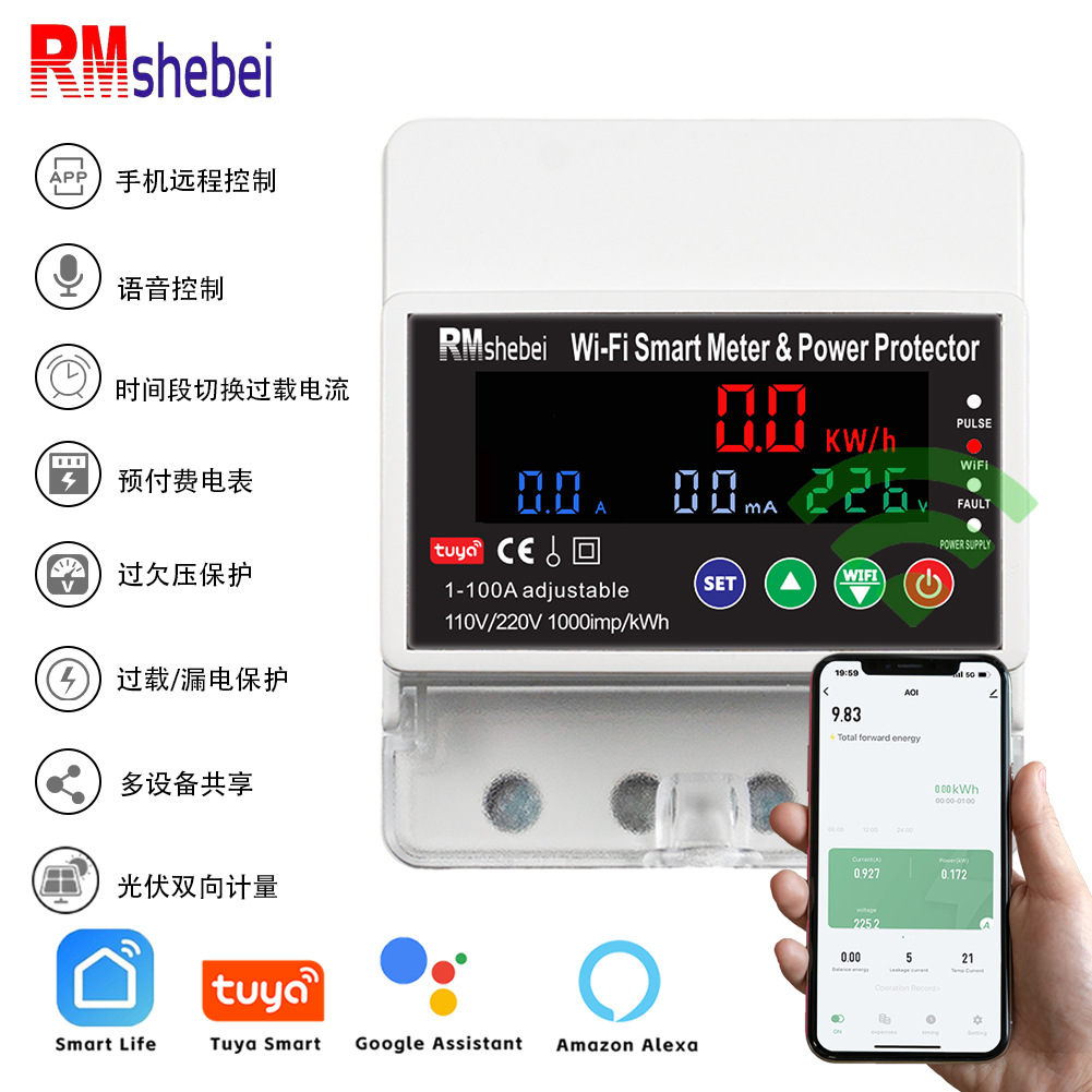 単相落書きスマートブレーカーwifi定時切替過負荷電流100A過電圧光発電双方向計測