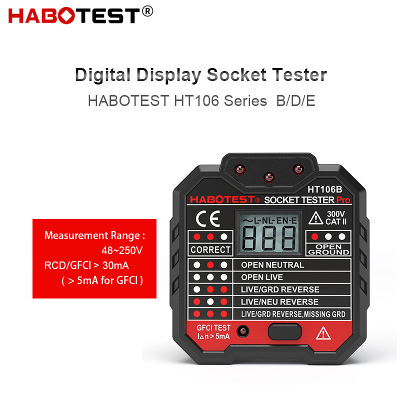 Ht106e/d/bデジタルコンセント安全測定器漏電スイッチ検出測定器ゼロ活線識別