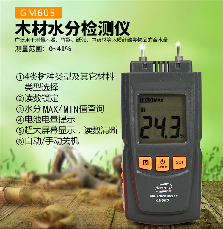 BENETECH GM630木材水分計 木材・床材・板材の水分含有量測定 デジタル表示