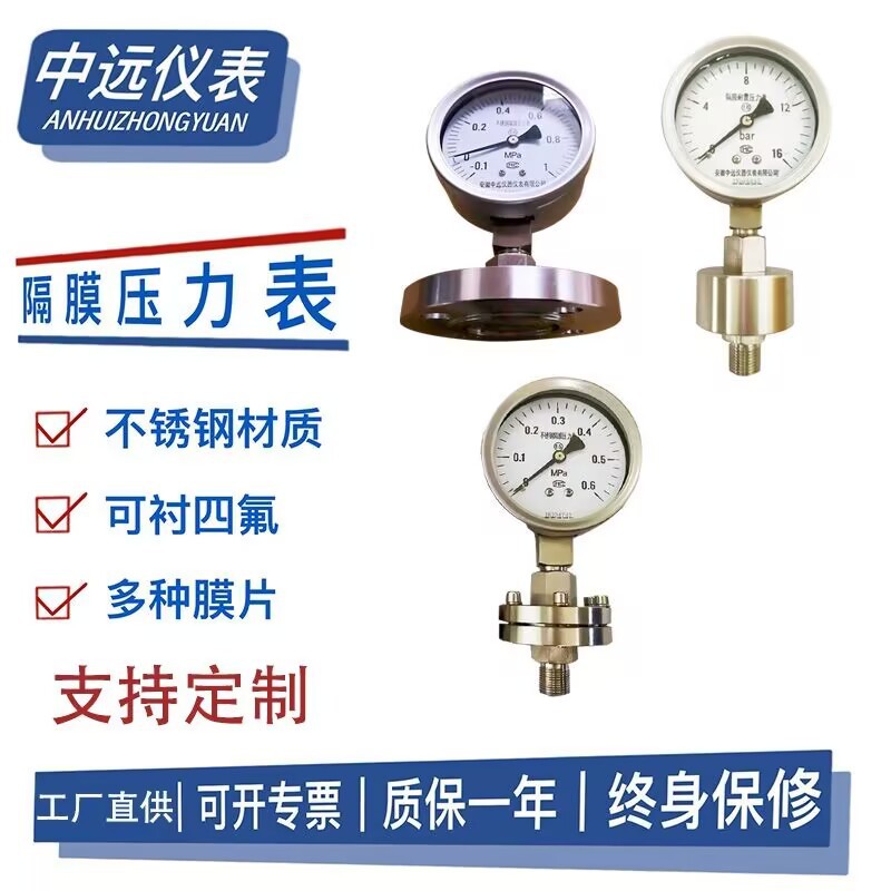 ステンレスフィルムボックス圧力計YE100BF 40KPa60耐硫圧力計耐高温耐食性マイクロ圧力計