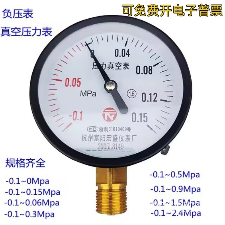 真空計 真空圧力計 負圧計 Y100*-0.1-0/0.15/0.3/0.5/0.9Mpa 正負圧