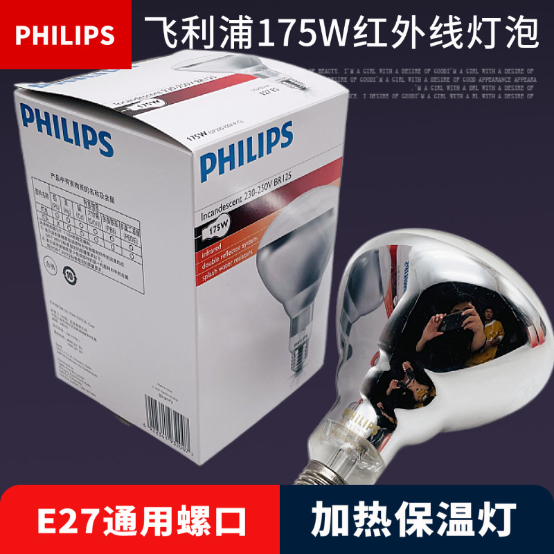 フィリップスbr125 175w畜産養殖加熱保温ランプe27干物食品フライドポテト電球