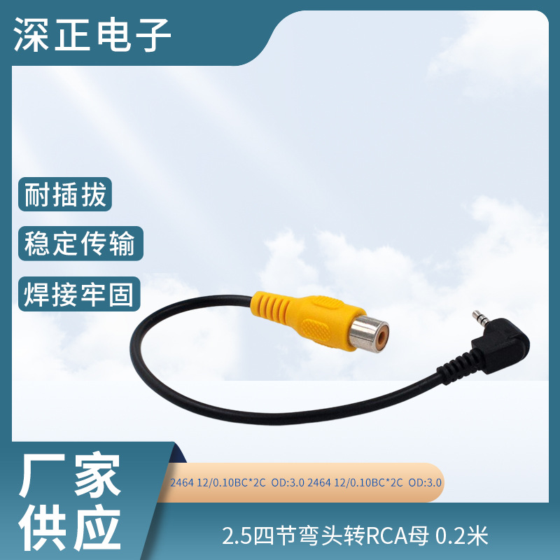 RCA音声ビデオ線2.5四節エルボRCAメスリード線OD1.6音声ビデオ線伝送線